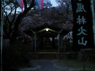 舞殿では薄明かりの中、明日から始まる信玄公祭りに奉納するのかな?